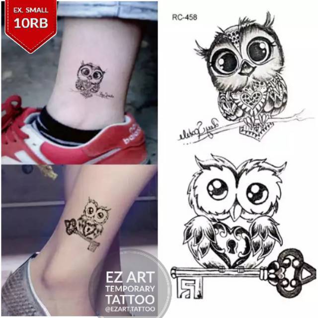 Tatto temporary gambar owl burung hantu tato temporer stiker .